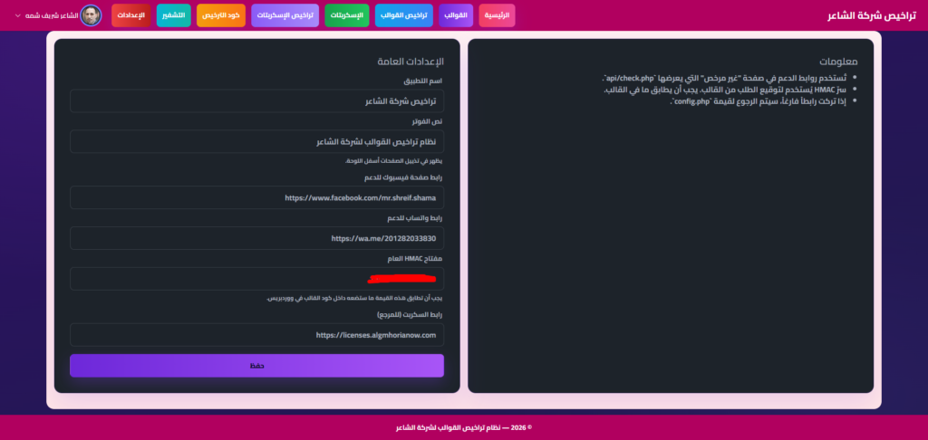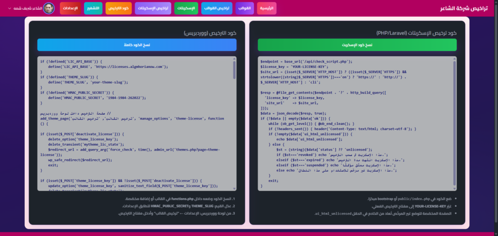 إسكربت التحكم فى تراخيص قوالب الوردبريس وجميع الاسكربتات